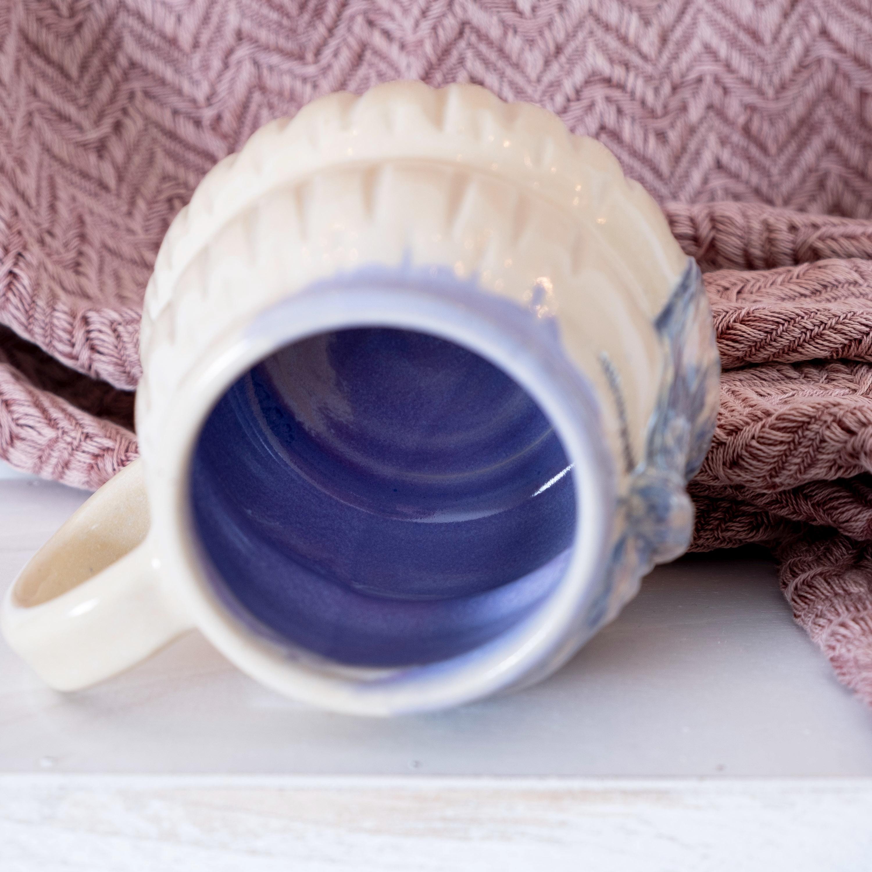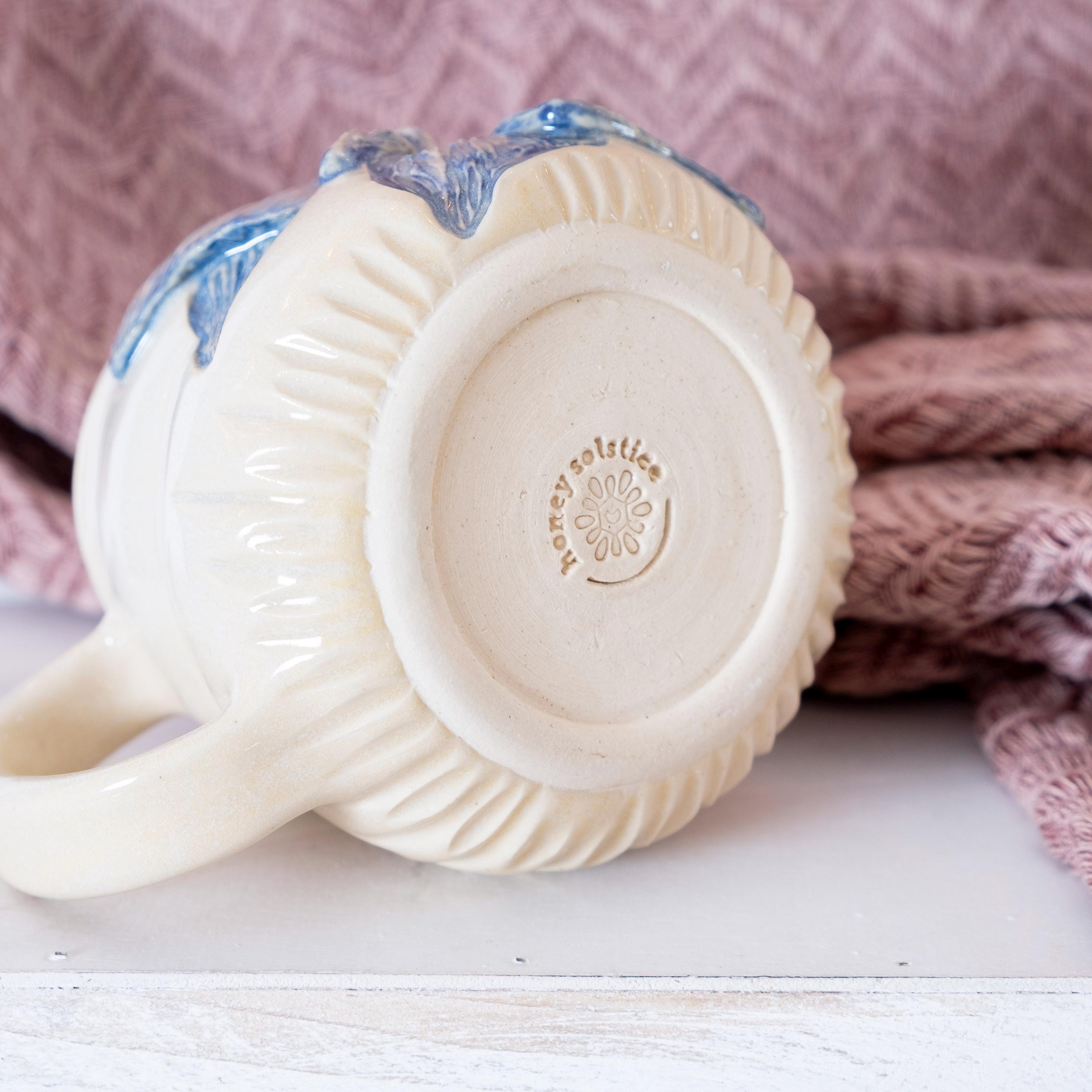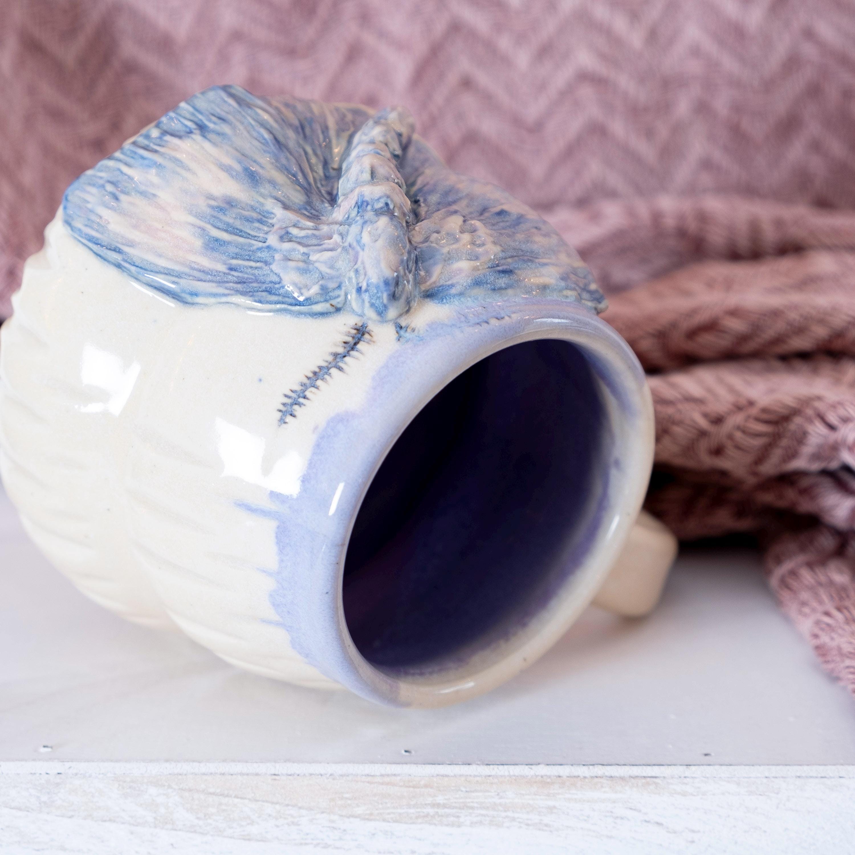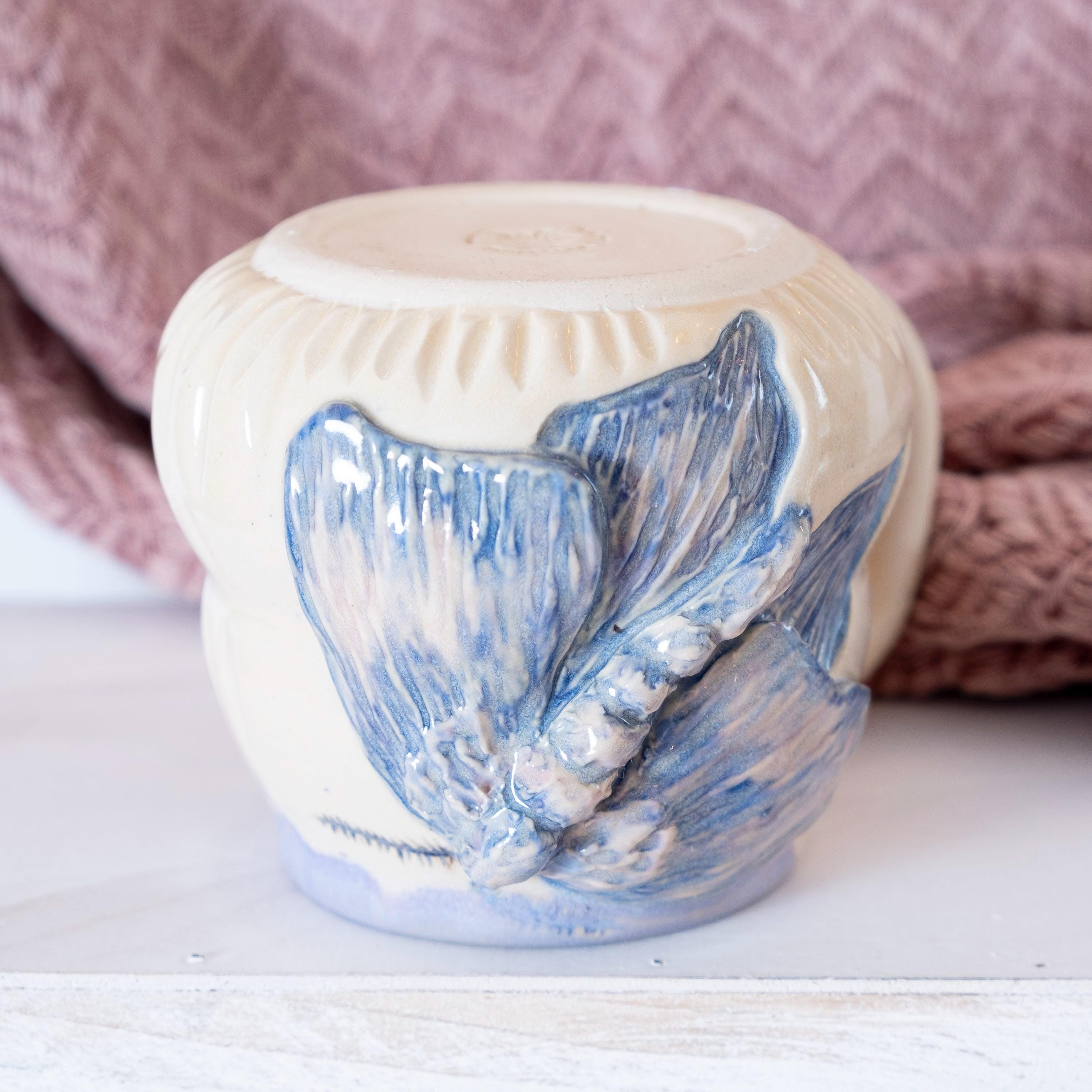 🦋 This oversized etherial moth mug is thrown on the wheel and then sculpted by hand to create a beautiful piece of art that is sure to brighten your day. The purple glaze has a ton of variation in it, which adds to the relief carving of the moth. This is the perfect gift for your bestie who loves bugs and nature (or for yourself). She's beautiful and witchy.