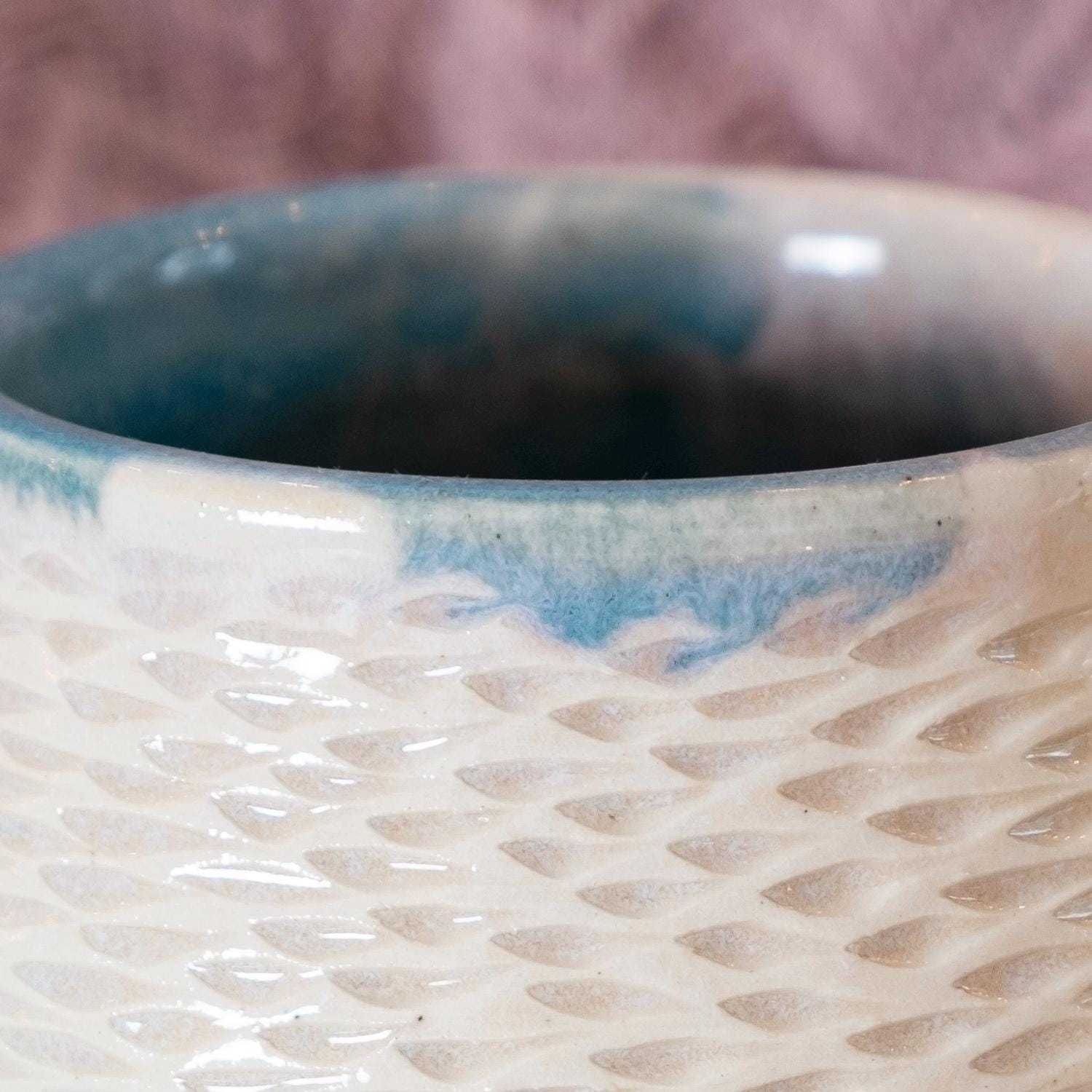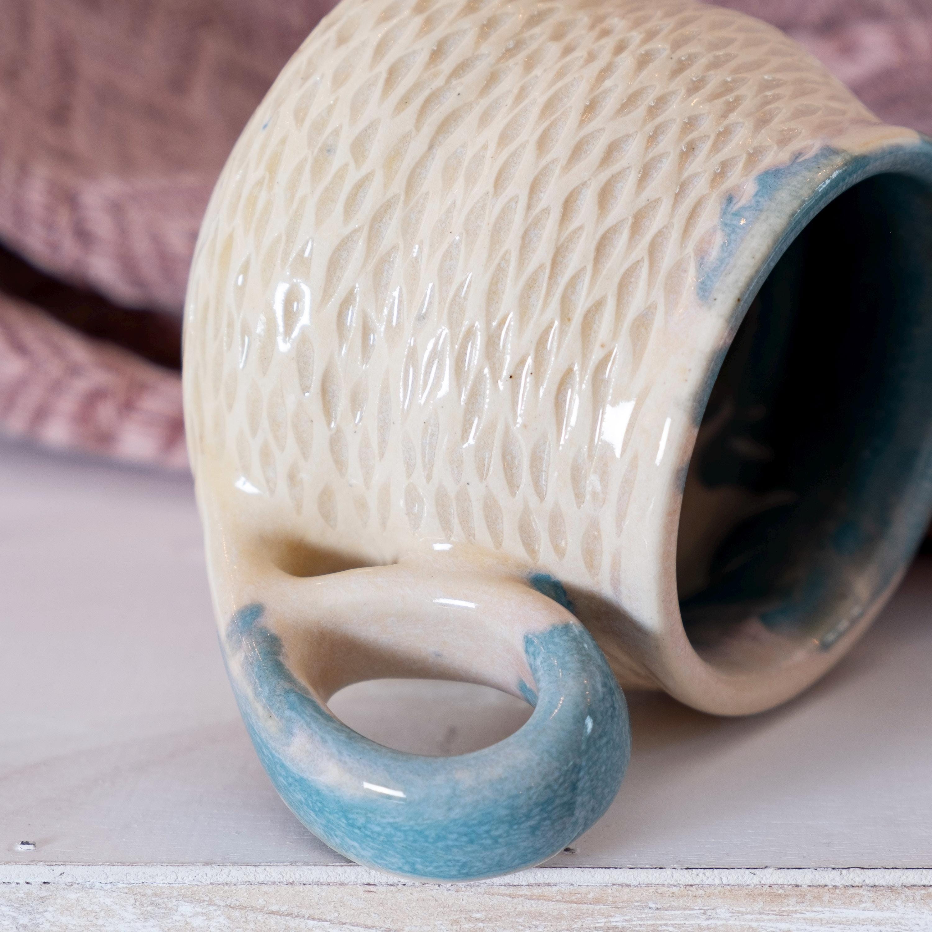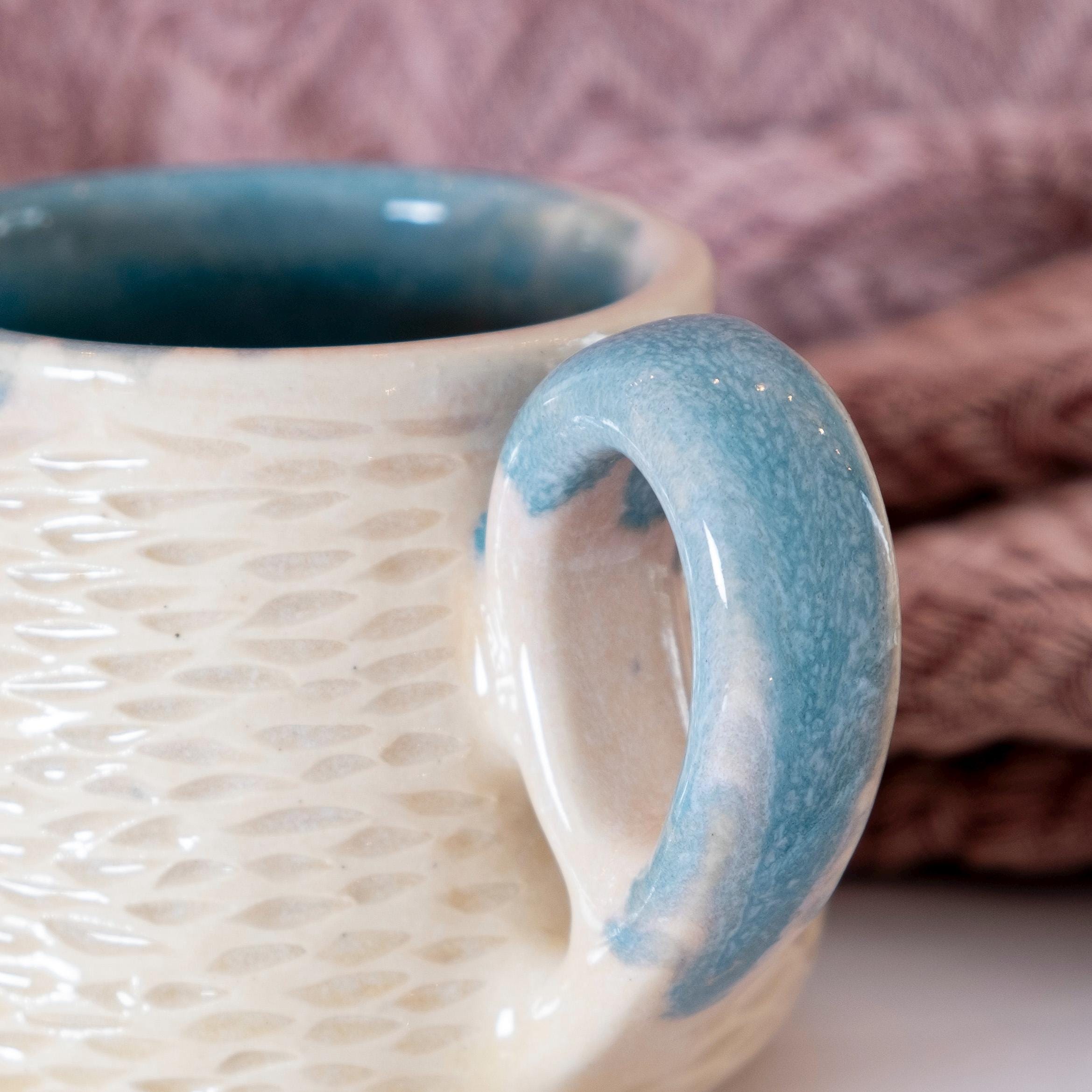 🦋 This perfectly sized etherial moth mug is thrown on the wheel and then sculpted by hand to create a beautiful piece of art that is sure to brighten your day. The blue glaze has a ton of variation in it, which adds to the relief carving of the moth. This is the perfect gift for your bestie who loves bugs and nature (or for yourself). She's beautiful and so satisfying to hold in your hands - look at that texture!